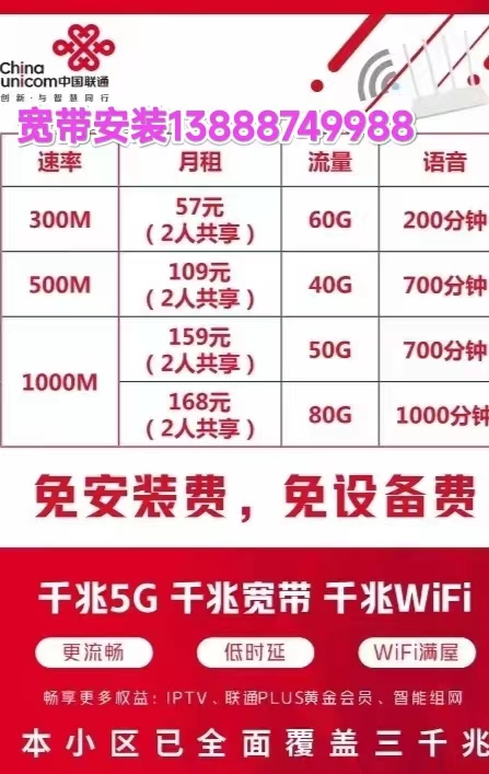 昆明联通宽带套餐价格表,联通宽带安装昆明联通宽带营业厅